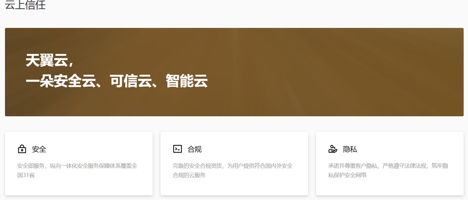 天翼云坚持自主安全可控,具备完备的安全合规资质与安全防护体系优势。