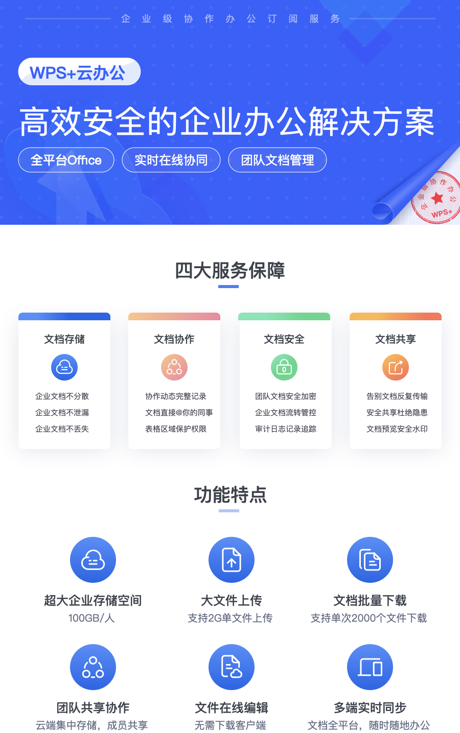 WPS云文档是金山办公面向企业推出的专业版本,基于WPS Office 客户端 ,金山文档等多种云端一体化的办公工具,构建了企业云文档中心,实现企业全员的云端办公和协作。(该版本不支持麒麟、统信等国产化操作系统)