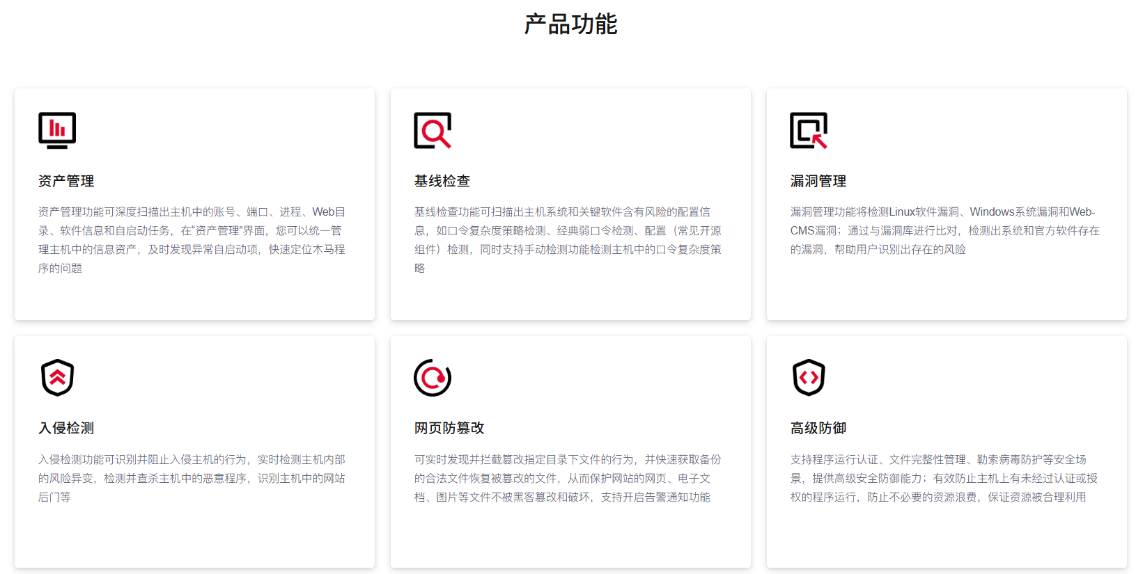 企业主机安全(Host Security Service)是服务器贴身安全管家,通过资产管理、漏洞管理、基线检查、入侵检测、程序运行认证、文件完整性校验,安全运营、网页防篡改等功能,帮助企业更方便地管理主机安全风险,实时发现黑客入侵行为,以及满足等保合规要求。