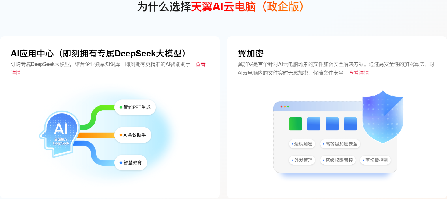 定制专属DeepSeek大模型,效率全面提升;全链路接入量子加密通信,云端畅游更安全。